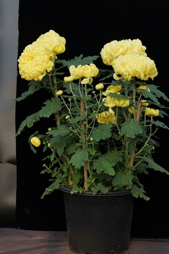A3黄球是独本菊,花为浅黄色,瓣型为平瓣,花型为叠球型,具有较强的抗蚜虫性和抗潜叶蝇性,观赏持续期较长。