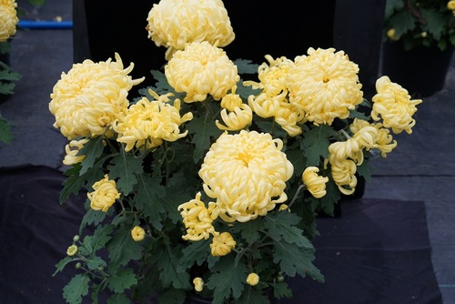 B1黄球S是独本菊,花为浅黄色,瓣型为平瓣,花型为叠球型,具有中等的抗蚜虫性,但抗潜叶蝇性较弱,观赏持续期较长。