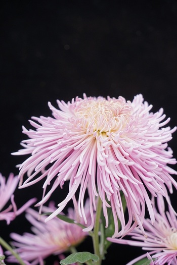 朽强楚是独本菊,花为浅粉色,瓣型为管瓣,花型为管盘型,具有较强的抗蚜虫性和抗潜叶蝇性,观赏持续期较长。