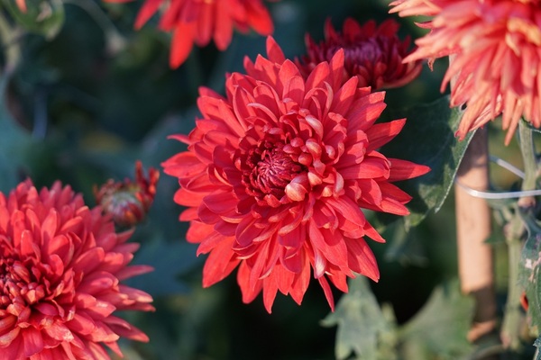 继红是独本菊,花为红色,瓣型为平瓣,花型为芍药型,具有较强的抗蚜虫性和中等的抗潜叶蝇性,观赏持续期较短。