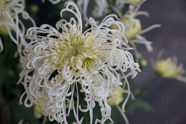 朱颖运河是独本菊,花为白色,瓣型为管瓣,花型为钩环型,具有中等的抗蚜虫性和抗潜叶蝇性,观赏持续期较长。