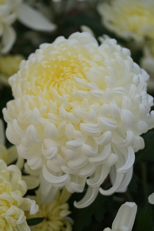 东海喜乐是独本菊,花为白色,瓣型为平瓣,花型为叠球型,具有较强的抗蚜虫性和抗潜叶蝇性,观赏持续期较长。