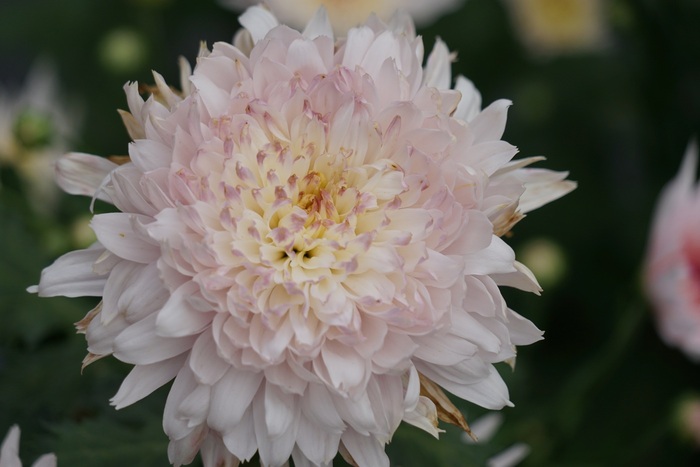 西龙公主是独本菊,花为淡粉色,瓣型为平瓣,花型为荷花型,具有较强的抗蚜虫性,但抗潜叶蝇性较弱,观赏持续期较短。