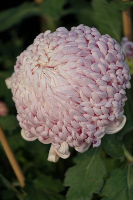 泉乡大纳言是独本菊,花为浅粉色,瓣型为平瓣,花型为叠球型,具有较强的抗蚜虫性和中等的抗潜叶蝇性,观赏持续期较长。