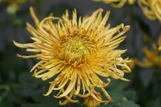 草庵古典是独本菊,花为橙黄色,瓣型为管瓣,花型为管盘型,具有较强的抗蚜虫性,但抗潜叶蝇性较弱,观赏持续期较长。