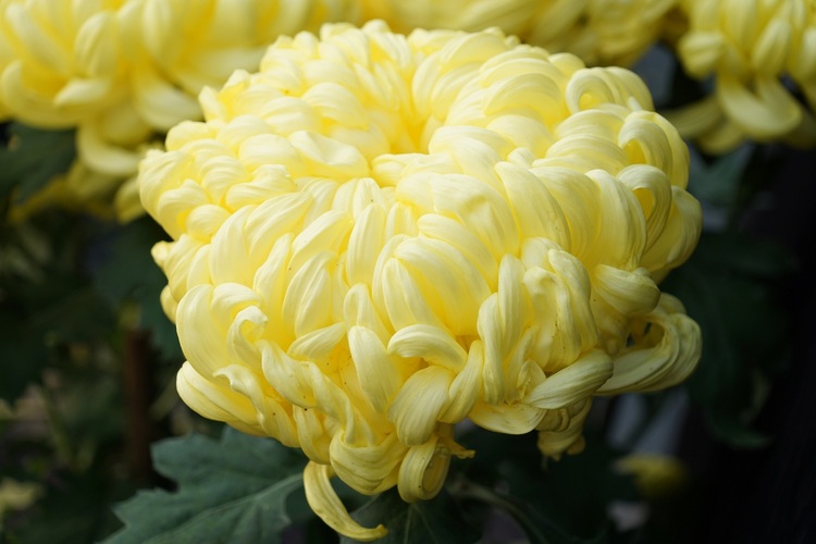 A1黄球是独本菊,花为浅黄色,瓣型为平瓣,花型为叠球型,具有较强的抗蚜虫性和抗潜叶蝇性,观赏持续期较长。