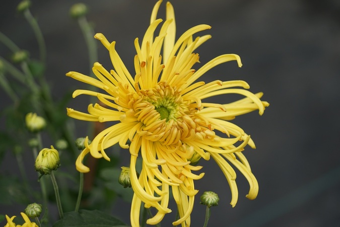 玉穗の圣光是独本菊,花为金黄色,瓣型为管瓣,花型为管盘型,具有较强的抗蚜虫性和中等的抗潜叶蝇性,观赏持续期较长。